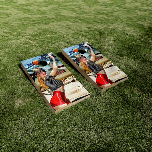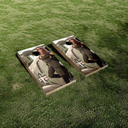 Retro Pinup Model Airplane Cornhole Wraps/Skins