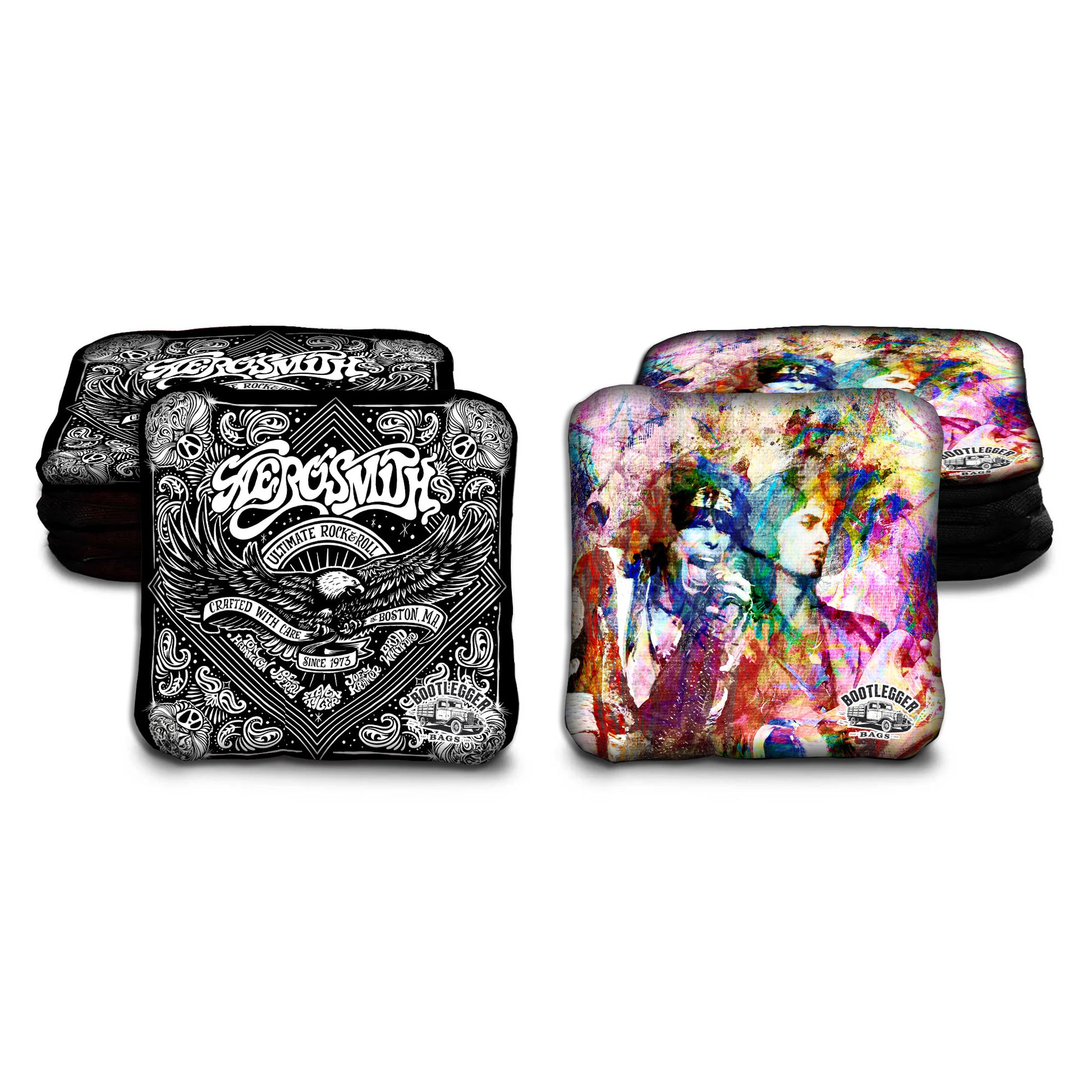 Featuring bold Aerosmith-inspired fan art, these bags are equal parts classic rock flair and backyard competition fire. Every toss is a power chord, every bag lands like a headlining hit. Facing off against a rival fan? Crank up the volume.