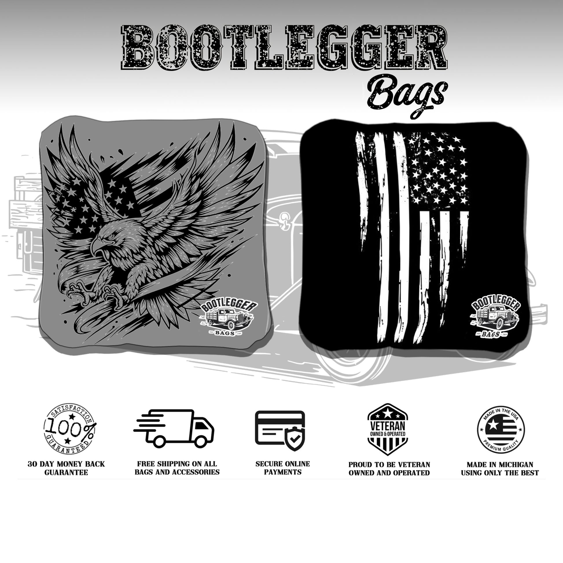 Featuring a bold eagle soaring over the classic red, white, and blue, these bags are designed to make every throw feel like a victory lap. Slide them in, hit the mark, and let your patriotism soar with each bag.