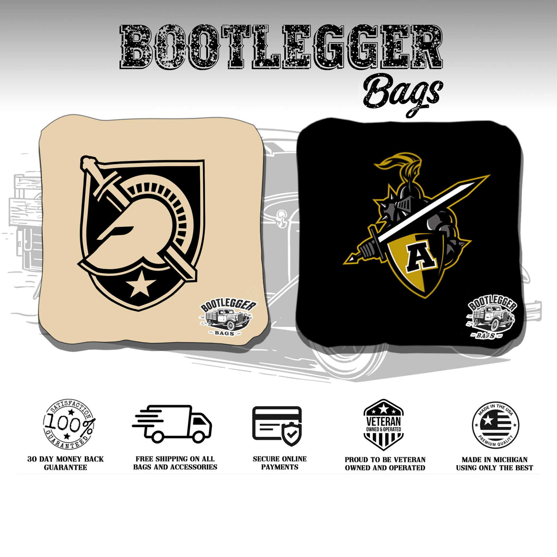 Featuring bold Army graphics, these bags combine West Point grit with classic cornhole fun. Every toss is a tactical strike. Every bag in the hole feels like winning the big game. Facing off against a rival team? Even better.