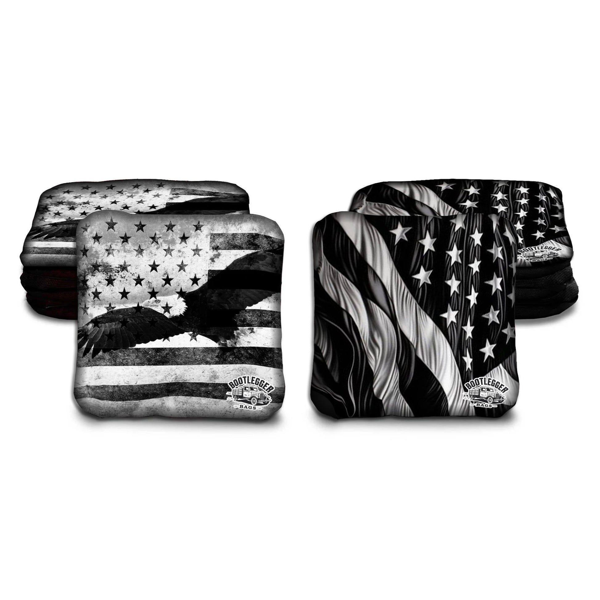 Black and White American Flag and Eagle Cornhole Bags