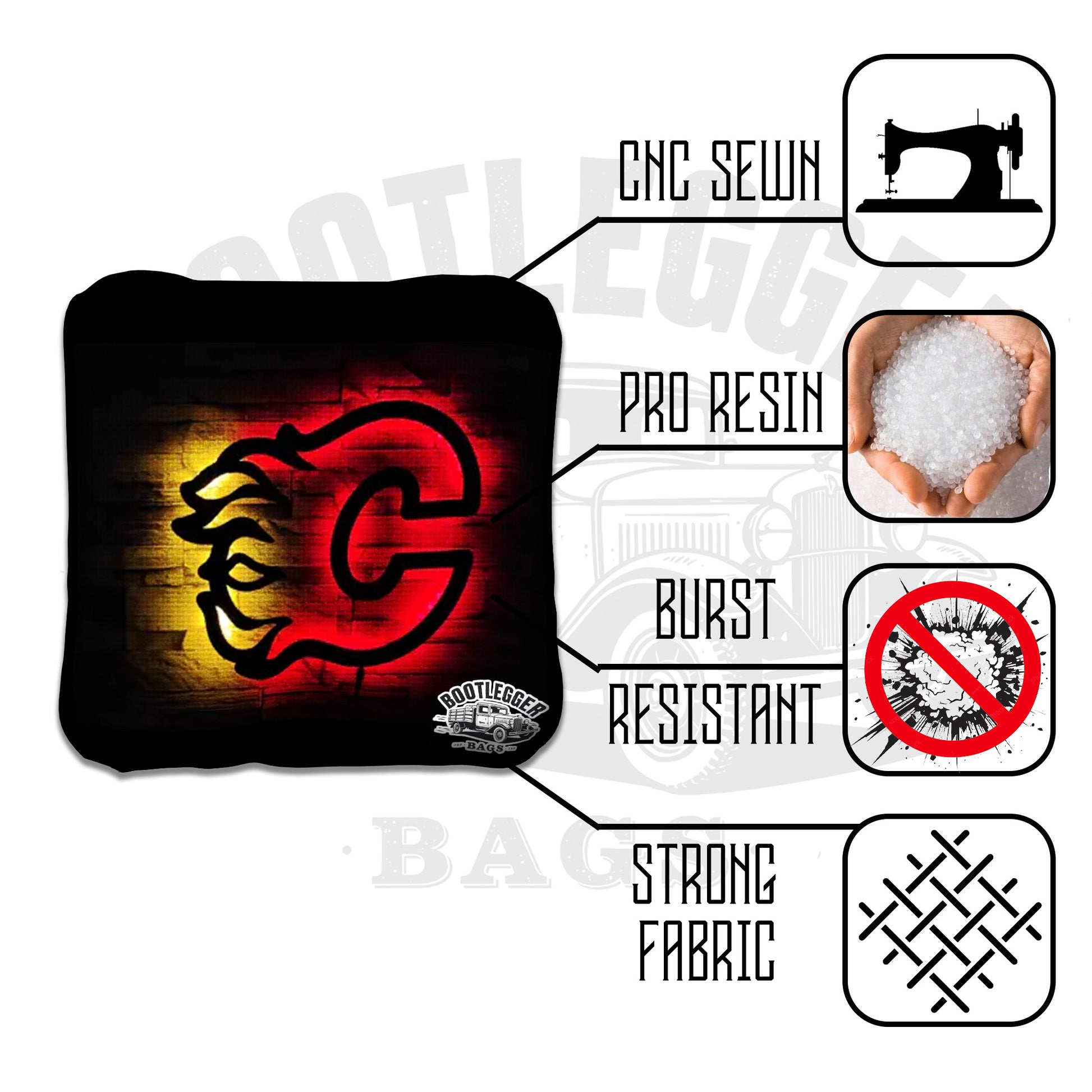 From backyard battles to game-day gatherings, these bags bring Flames pride, fiery artwork, and unmistakable Calgary attitude to every throw.