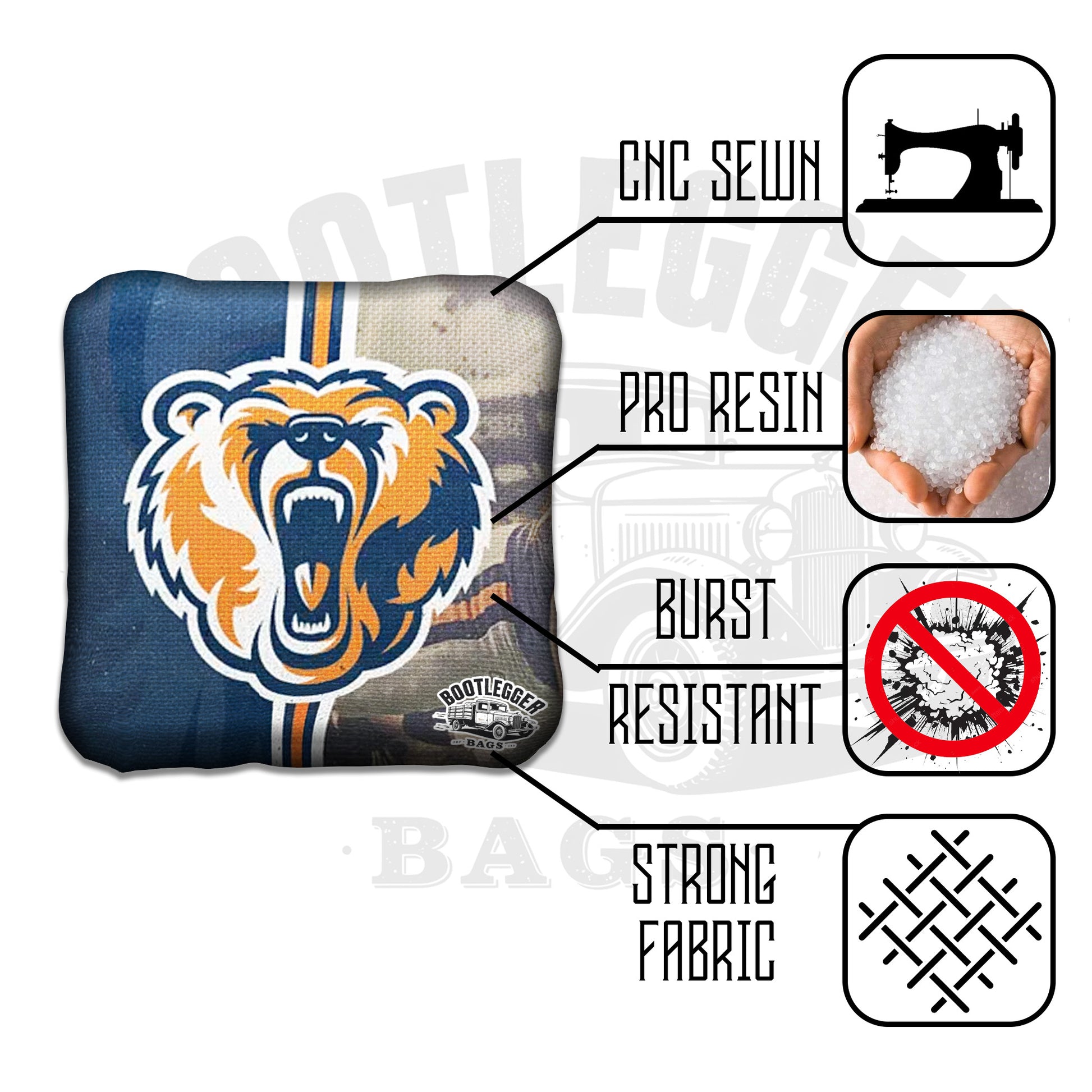 Featuring a striking Bears fan art design with that unmistakable Windy City toughness, these bags pack equal parts Chicago pride and football bite. Every toss hits like a linebacker. Every bag feels like a game-winning drive. Playing against a Packers fan? Even better.