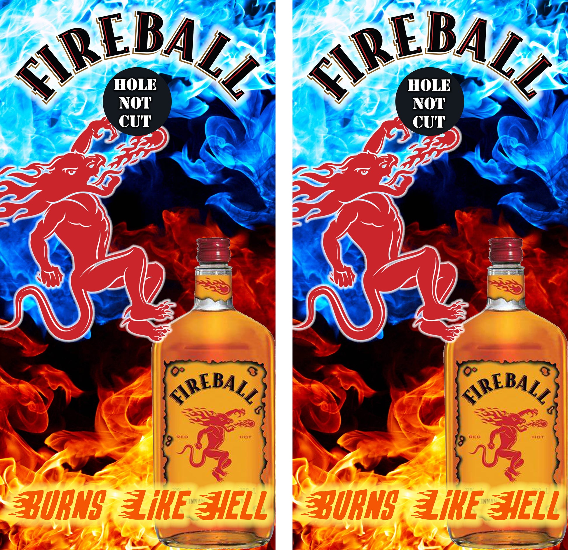 Revamp your cornhole boards with a blaze of excitement using our Fireball Whiskey 'Burns like Hell' Vinyl Wraps/Skins! Perfect for giving your tired boards a fresh, eye-catching look, these premium vinyl wraps will transform your old setup into a fiery statement piece.