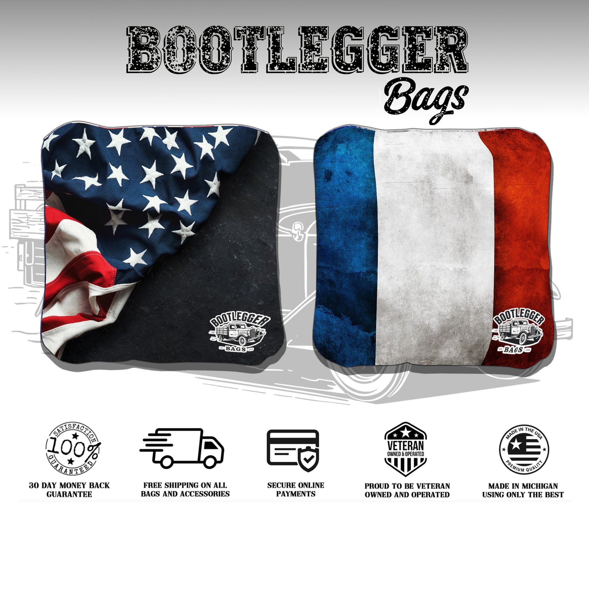 Featuring the iconic blue, white, and red of the French flag paired with the stars and stripes of the American flag, these bags make every game a celebration of two nations. Each toss lands with precision, every bag counts, and every match becomes memorable.