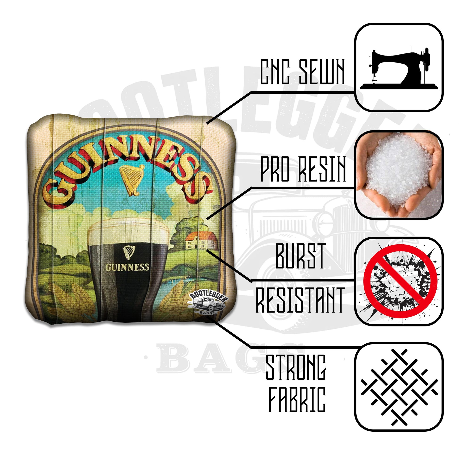 From backyard rivalries to tailgate tournaments, these Guinness-inspired bags bring stout energy and Irish charm to every throw.