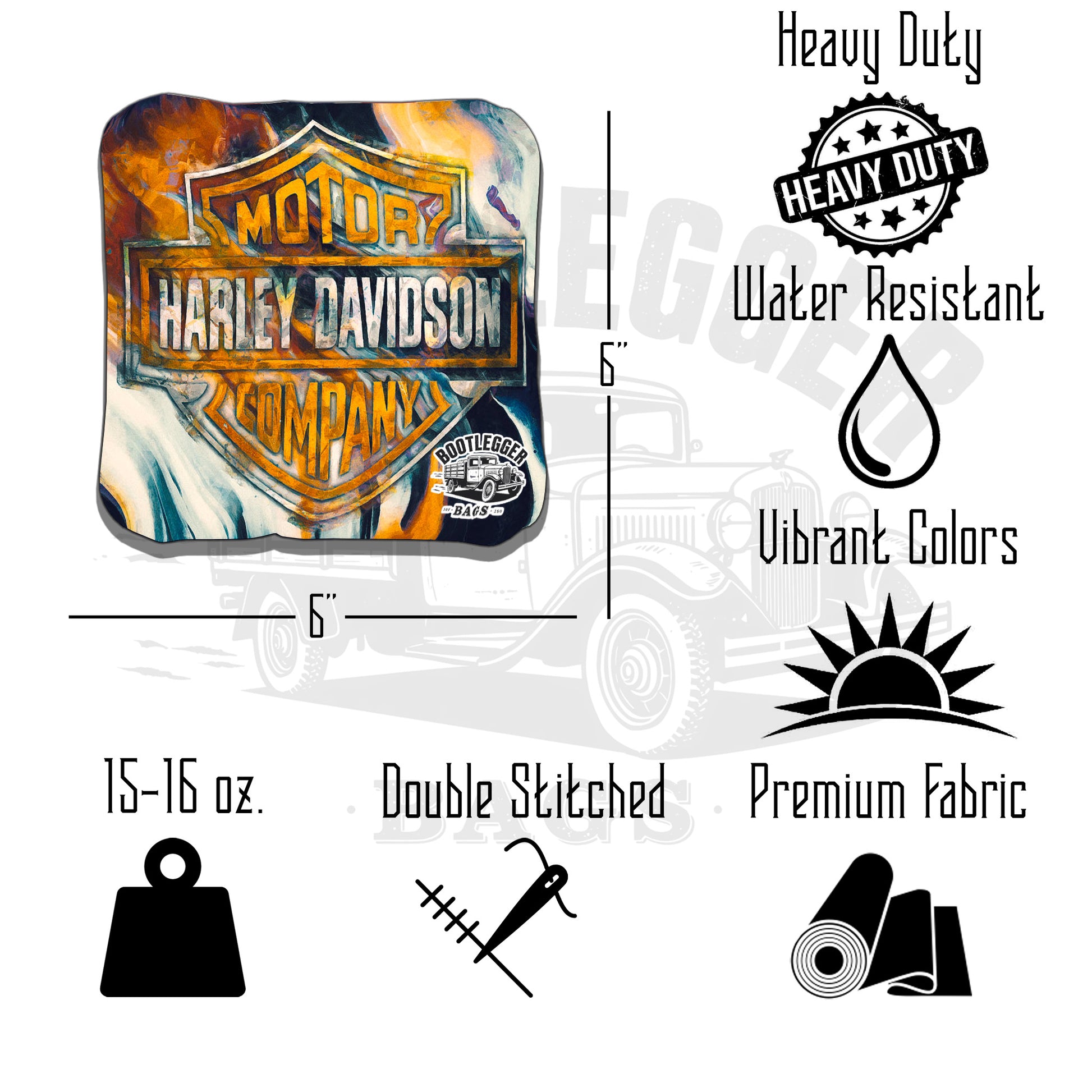 Featuring a vintage-inspired Harley Davidson skull-and-flame design, these bags combine throwback attitude with smooth, hole-friendly performance. Every toss hits like a full-throttle ride, every bag lands like a precision strike, and every game has that open-road thrill.