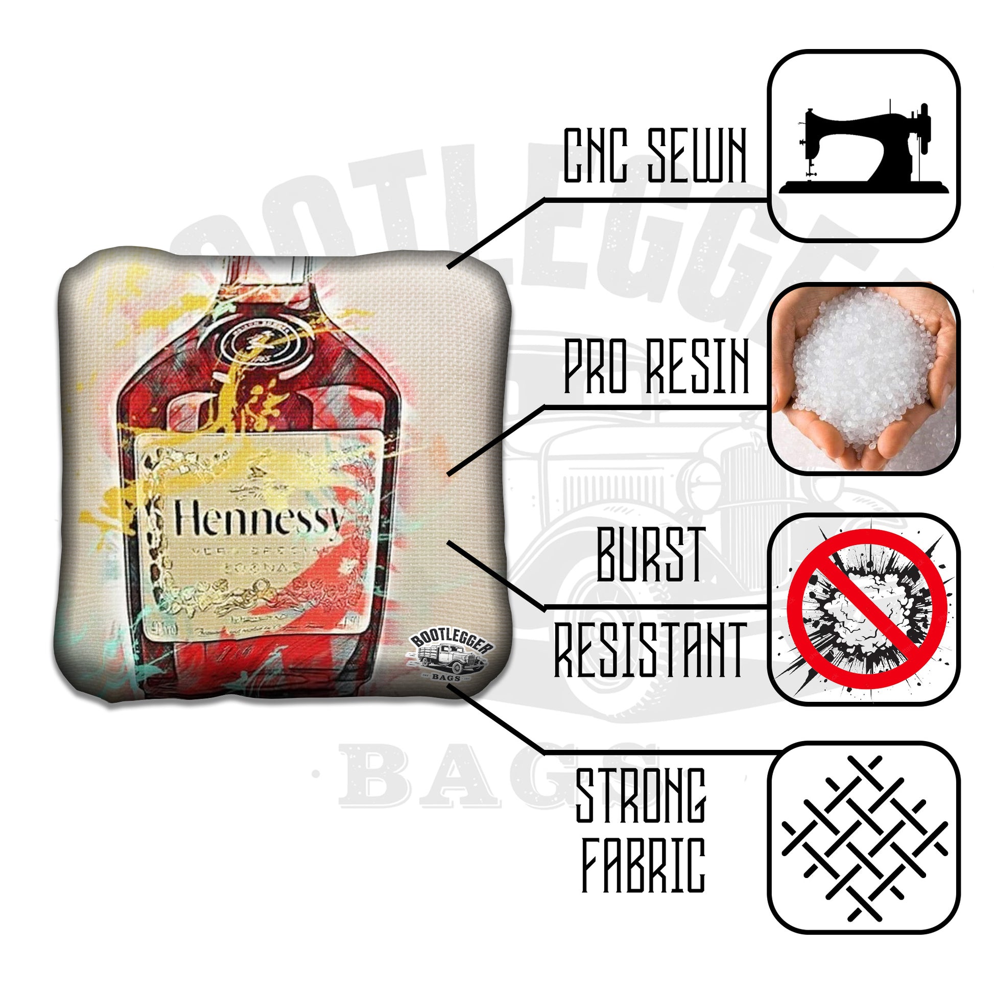 From backyard competitions to tailgate parties, these Hennessy-inspired cornhole bags bring rich style and smooth attitude to every throw