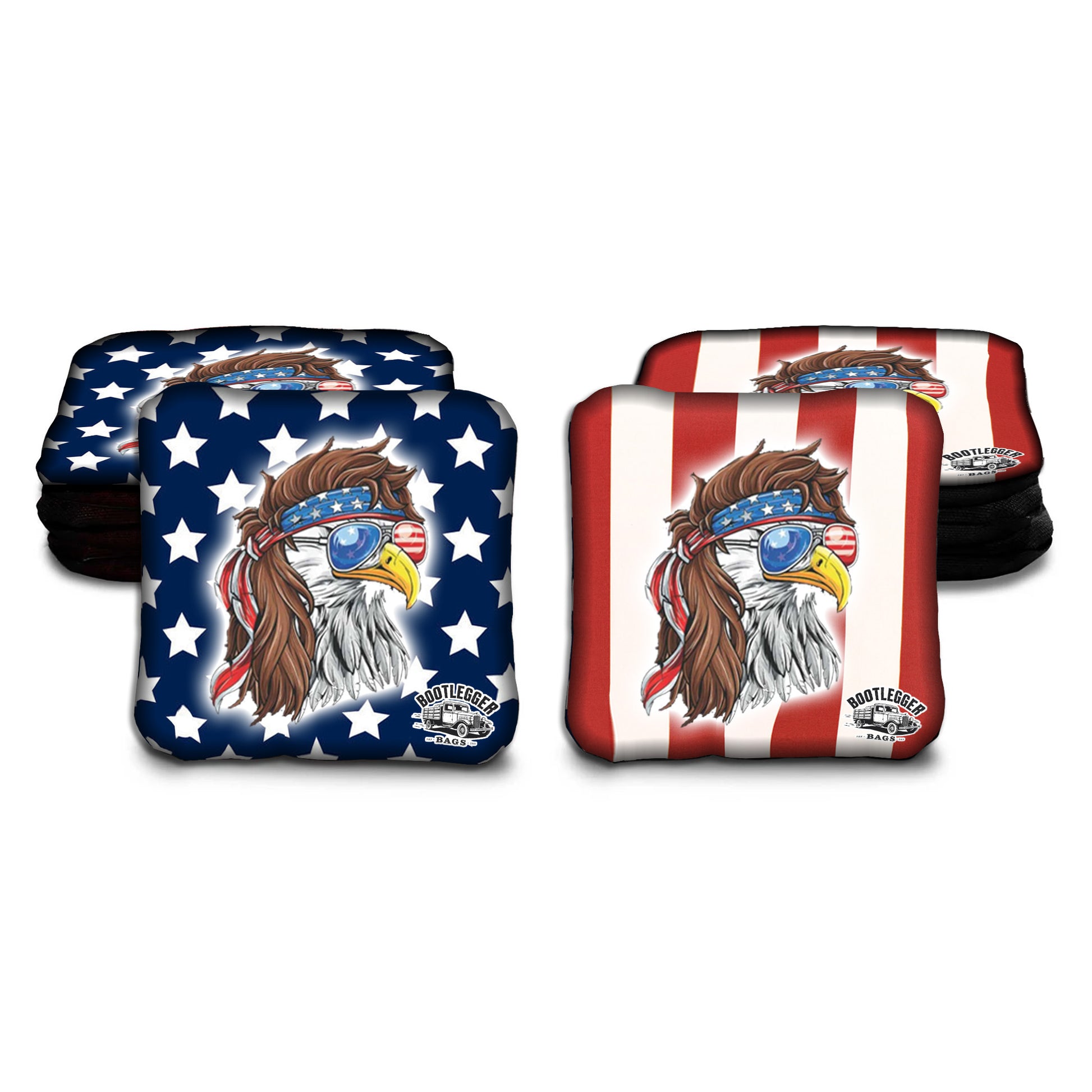Featuring a snarling eagle clutching stars and stripes, these bags combine patriotic flair with a playful hillbilly edge. Every toss is a statement. Every bag that lands in the hole is a victory for backyard liberty. Playing against your cousin? Even better.