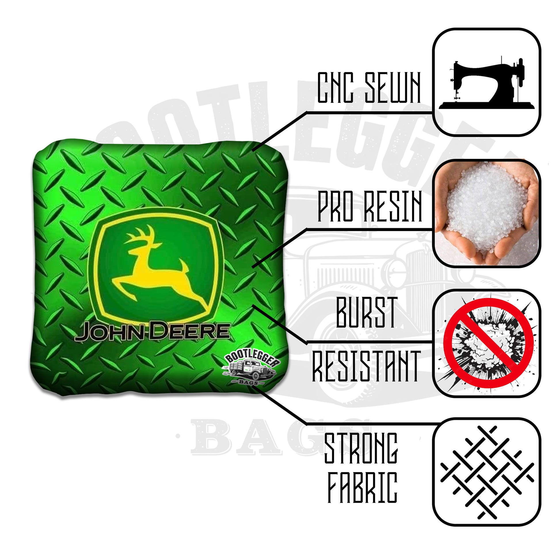 Featuring iconic John Deere green with a sleek gun metal accent, these bags combine agricultural tradition with modern toughness. Every toss is as smooth as a freshly plowed row, every bag a home-run on your board. Competing against city slickers? Even better.