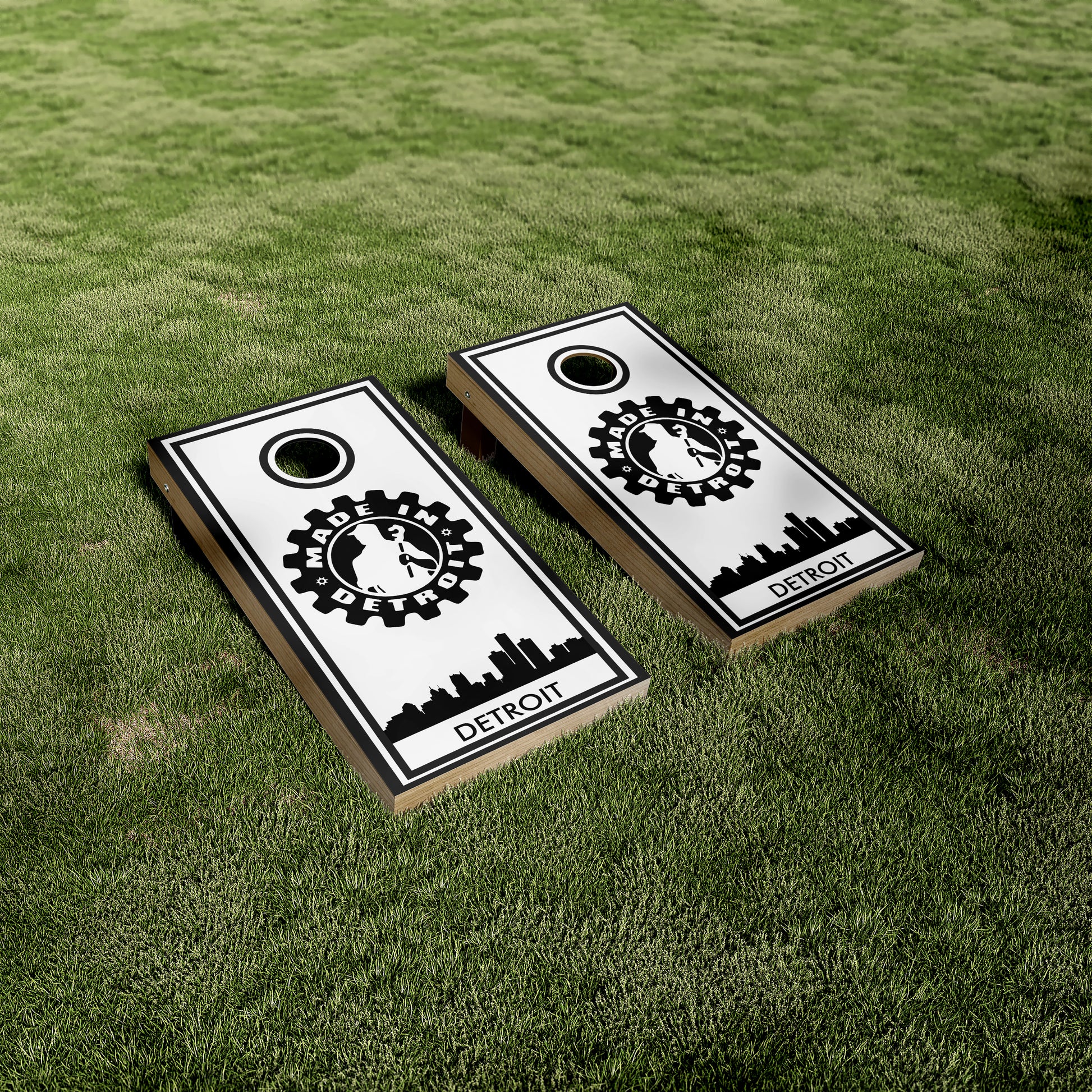 Put the Motor City on Display with Made in Detroit Logo Cornhole Vinyl Wraps