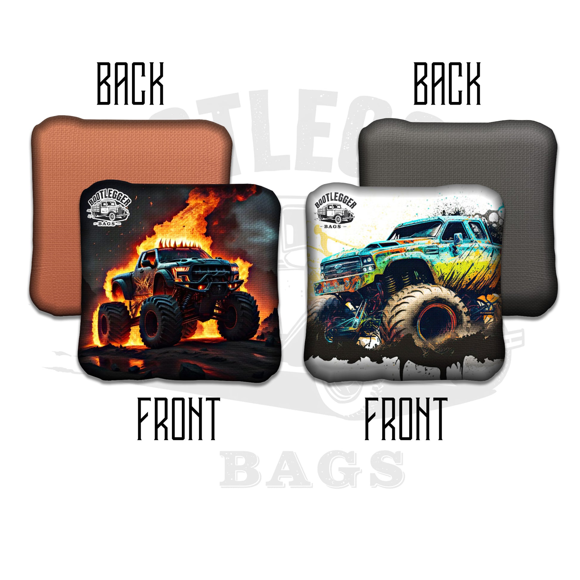 From backyard competitions to tailgate chaos, these bags bring the monster truck roar and candy skull fire to every toss.