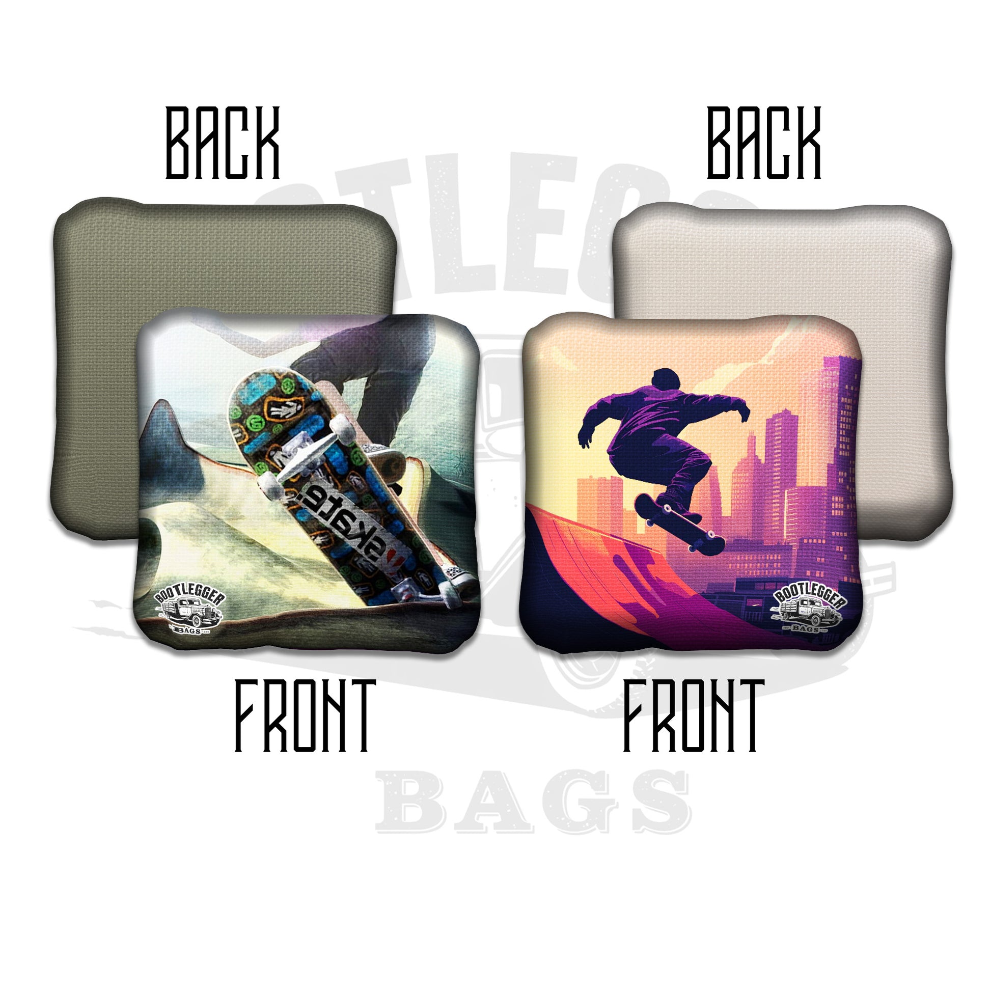 Featuring a candy skull design fused with skateboarding swagger, these bags are equal parts Día de los Muertos flair and grind-hard grit. Every toss is a smooth ollie. Every bag, a perfect landing. Facing off against a rival skater? Even better.