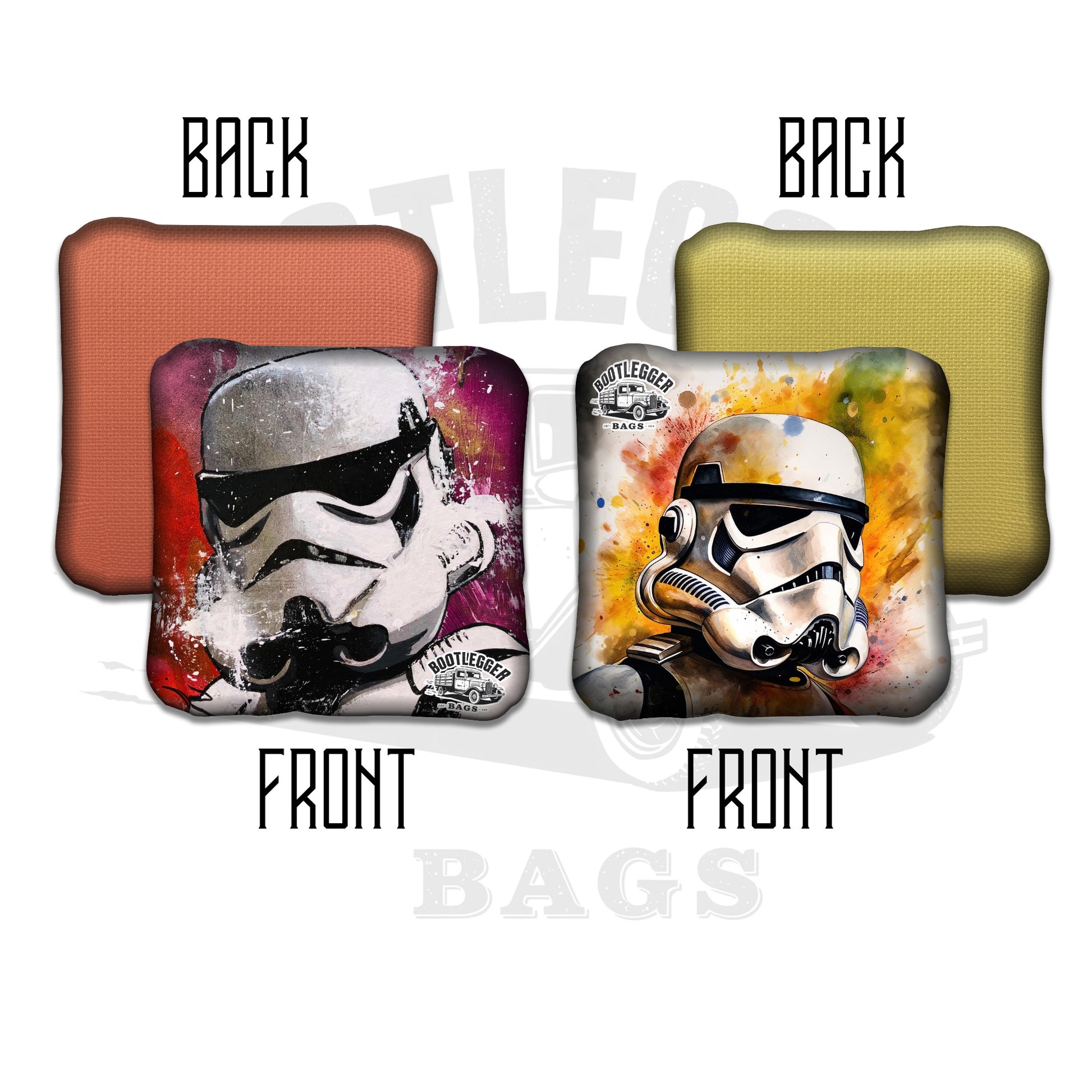 Featuring fan art of classic Storm Troopers, these bags are equal parts interstellar toughness and precise aim. Every toss is mission-critical. Every bag lands like a perfect shot from a blaster. Facing a Rebel Alliance fan? Mission accomplished.
