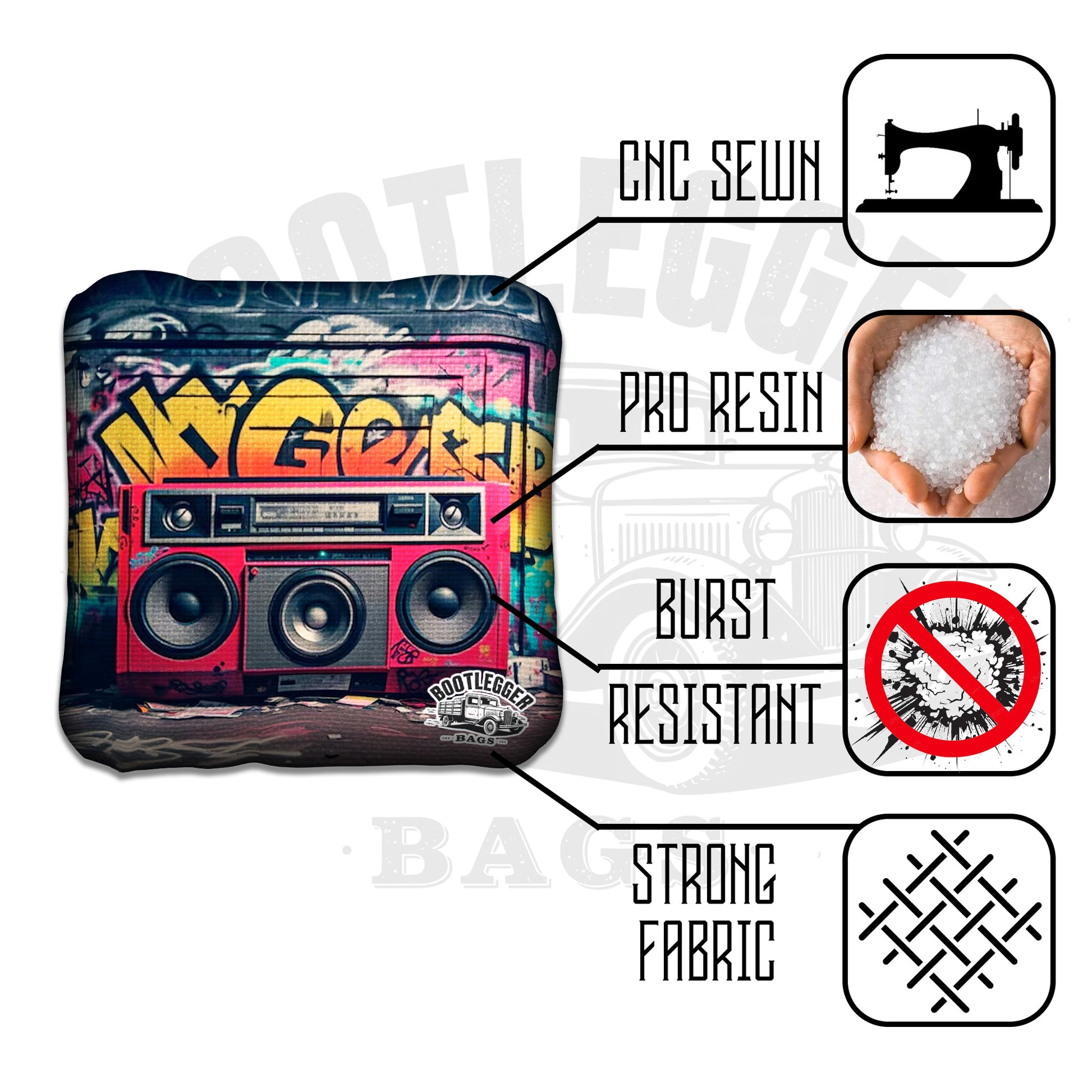 Featuring retro stereo graphics that scream street vibes and classic music nostalgia, these bags turn every toss into a rhythmic hit. Each bag slides smooth like a vinyl record, and landing one in the hole feels like hitting the perfect note. Compete against friends, challenge neighbors, or just rock your own backyard set.