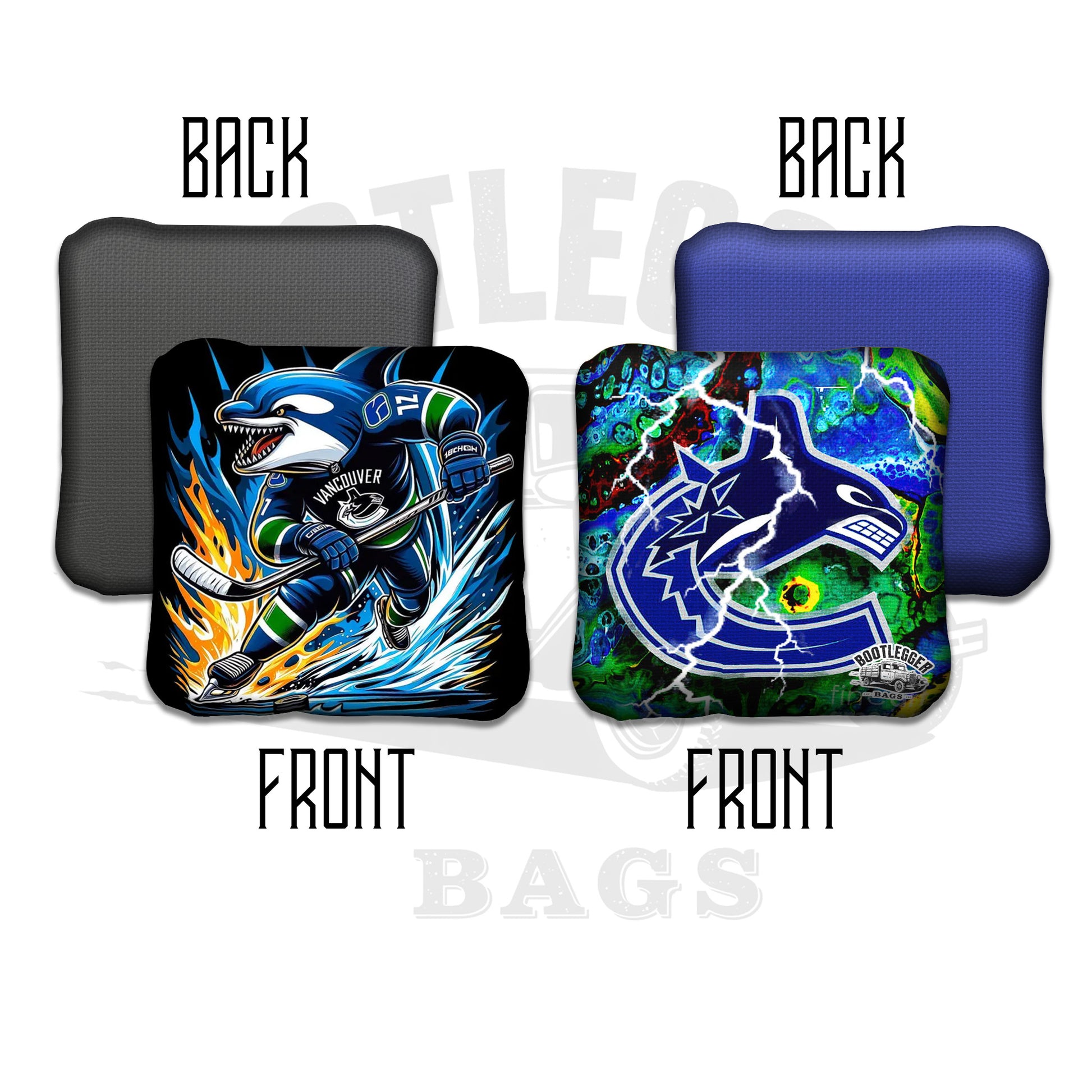 Featuring a candy skull design fused with the iconic Canucks logo, these bags are equal parts Día de los Muertos flair and West Coast grit. Every throw is precise, every bag a game-winning shot. Facing off against a Flames or Oilers fan? Even better.