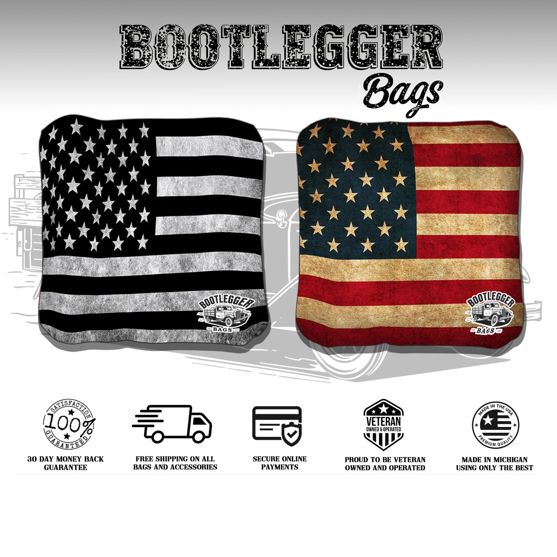 Featuring a rugged, weathered flag design, these bags combine classic Americana charm with serious tossing power. Every slide into the hole is smooth, every bag hits with purpose, and every match feels like a victory lap.