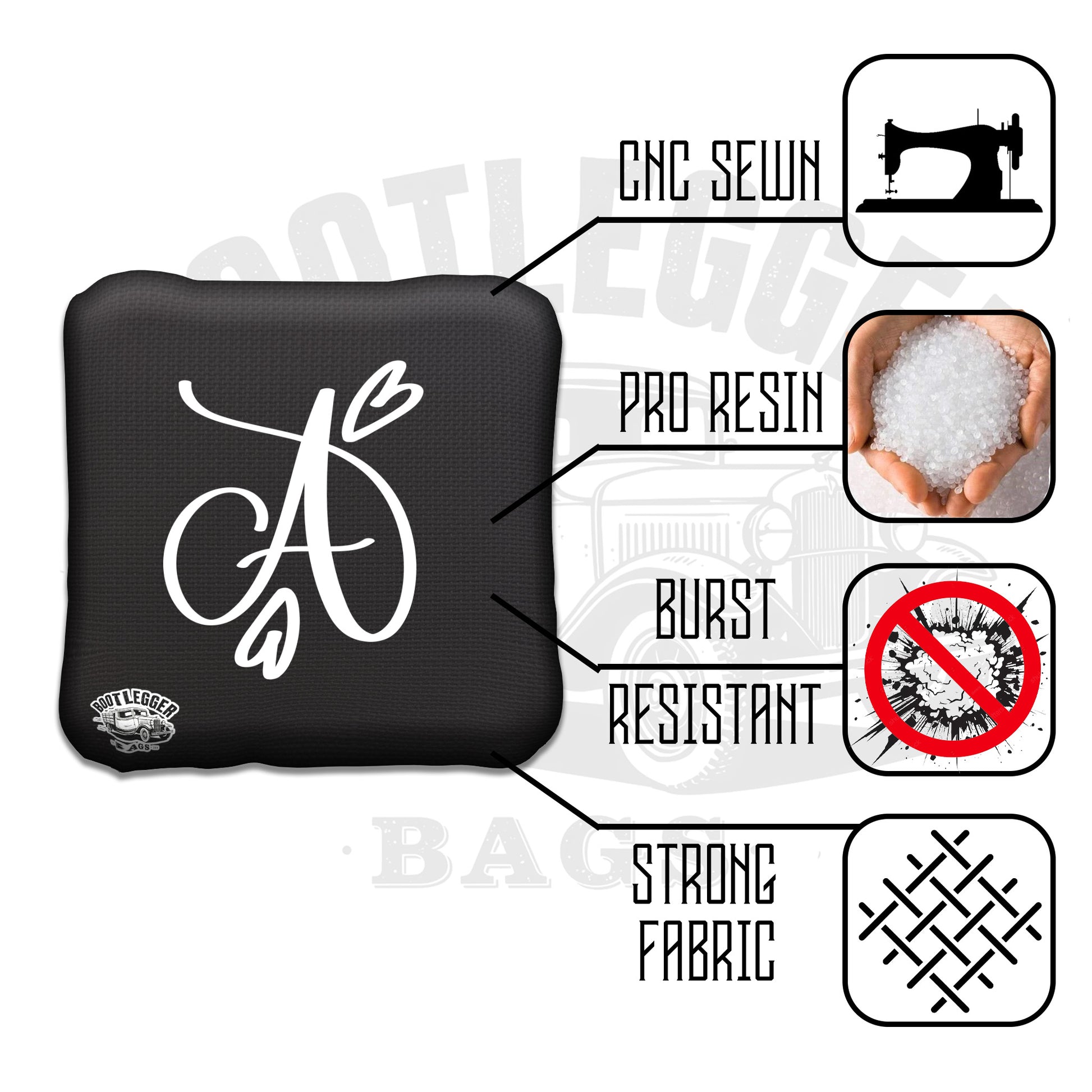 Crafted from premium, durable fabric, waterproof and easy to clean, with double-stitched corners and CNC precision. These bags can handle fast throws, spilled drinks, and all the excitement of wedding festivities.